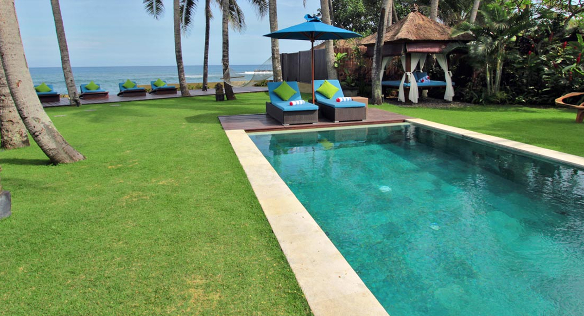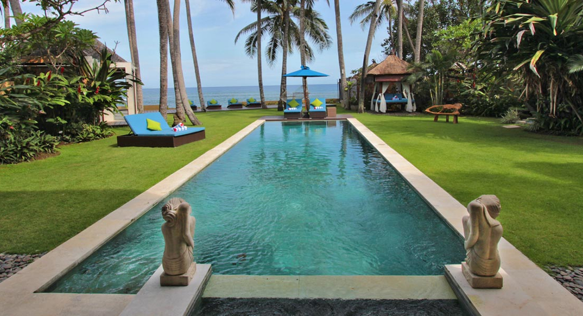 Villa Samudra is a holiday rental beachfront villa in Bali. Only 45 minutes from Bali International NgurahRai Airport, 15 minutes from Sanur, 10 minutes From Bali Safari and Marine Park, 10 minutes from Keramas Surfing Beach and dolphin watch, 20 minutes from Ubud, central of Balinese culture and within minutes to other tourist attractions.