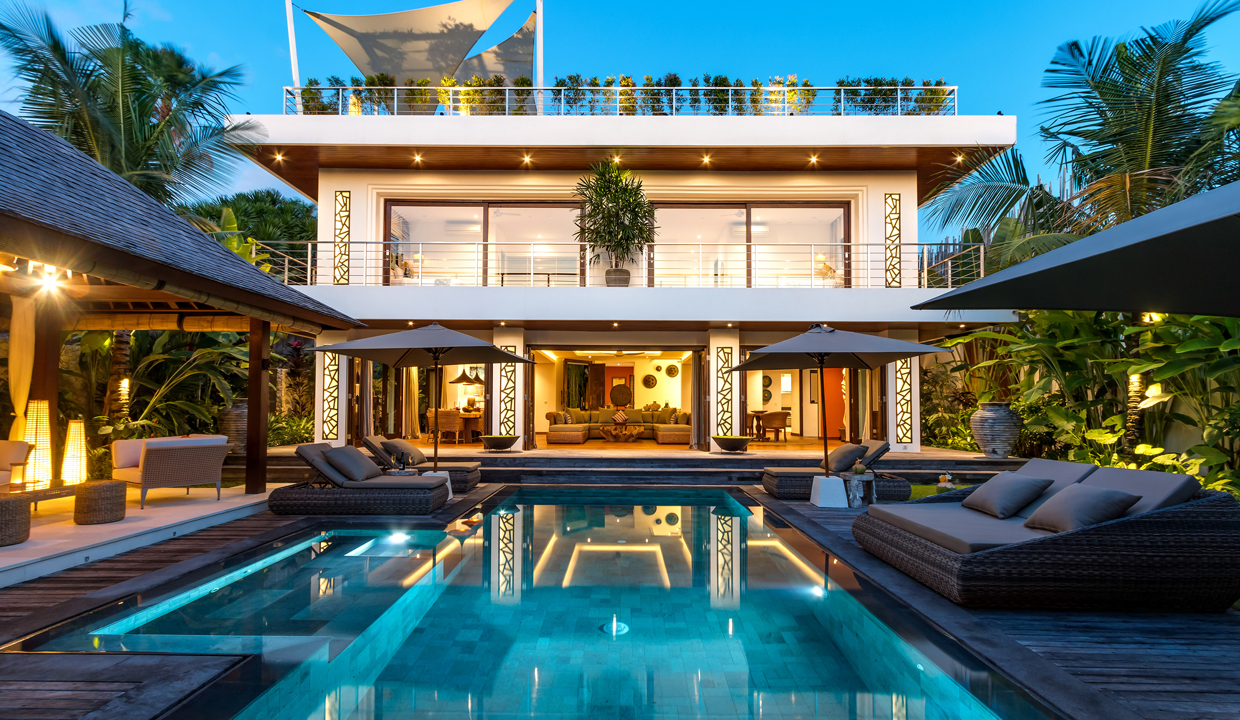 Nestled in the peaceful and rural area of Umalas, Sundance Villa offers the perfect setting for a serene tropical escape in Bali. Surrounded by lush greenery and peaceful rice fields, this luxury villa features four bright and spacious bedrooms, an inviting private swimming pool, sunny rooftop terrace, and beautifully enclosed living areas. With space for up to 8 guests by default, the villa can comfortably host up to 12 people with the addition of extra beds (available at an additional cost).